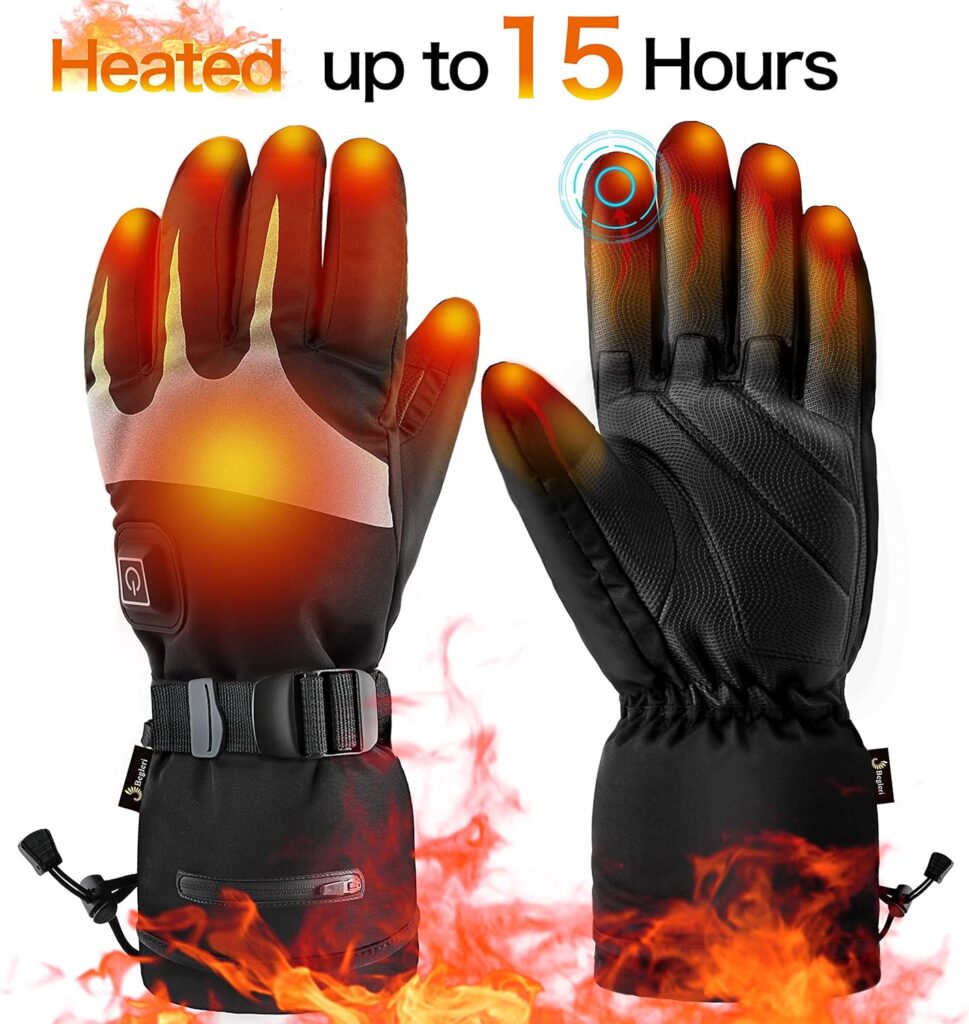 The battery-powered glove comes with two updated 3.7V 7000mAh batteries to give up to 15 hours of warmth.