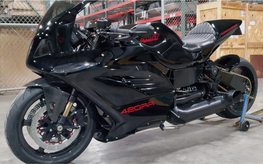 The MTT Y2K Superbike features a Rolls-Royce turbine engine that produces a jaw-dropping 420 horsepower. It’s the first production bike powered by a jet engine, capable of hitting top speeds exceeding 227 mph (365 km/h). The MTT Y2K has been recognized as one of the most powerful serial motorcycles with a top speed reaching 370 km/h (230 mph).