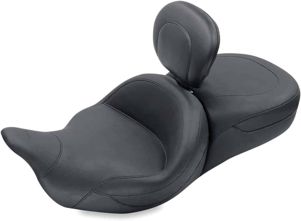 Mustang designs both the base in a way that both the rider and passenger backrest can easily slide through. Without a backrest, your touring is stressful and may cause back pain. Therefore, you must look for a way to install backrests. However, many models come with removable and adjustable backrests. The only setback with this model is the extra cost of finding and fixing a compatible backrest for the model. This seat is also compatible with a tour pak, making it a great choice for riders who want to add this popular touring accessory without worrying about fit or bulk.